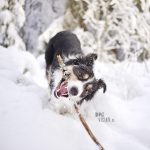 Jassen, mutsen, dikke truien,… daar heeft Mogwai allemaal geen boodschap aan. Geen idee of ze in totale ontkenning is, niet doorheeft dat de thermometer ondertussen -13 graden aangeeft of ze gewoon een heerlijk warme pels heeft die haar in weer en wind warm weet te houden. In elk geval, terwijl de oudjes rustig op hun jasjes wachten, loopt Mogwai al lekker buiten te snuffelen, speelt ze ongedwongen op haar ukkie met haar bal of gaat ze een beetje schaapachtig te kijken tot de michelinmannetjes eindelijk klaar zijn voor een nieuw avontuur.