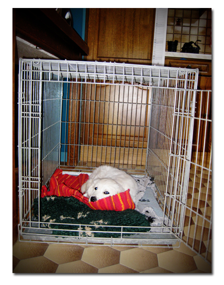 Nu ze al bijna een echte grote is, moest ze een groter bed hebben, leek ze te bedenken. De kleine bench die ze van Hachiko had meegekregen liet ze voor wat hij was en ze palmde de grote bench in die hier nog stond: