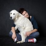Aanvankelijk was het de bedoeling slechts een snel portretje te maken, als een soort update doorheen de jaren. Terwijl de doggies net even  rust namen na de 5e ronde ravotten, hing ik alvast de achtergrond op en nog voor die deftig vastplakte of de lampen hun plek hadden gevonden, zat zij reeds klaar, te wachten tot we foto’s zouden maken.